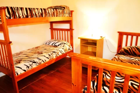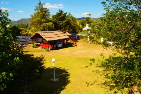 Dependencias: 4 cabañas, cada una con cocina comedor y baño en P.B y 2 dormitorios en P.A, cocheras y pileta cercada, amplio parque.